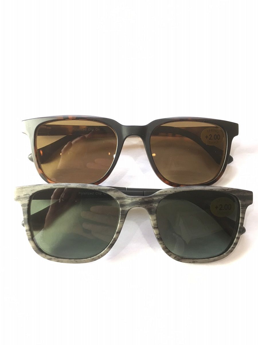 This reader has a polarized sun clip to make a polarized sun reader. Many people want this feature but as yet they are only available from an optometrist. The polarized clip is held to the reader magnetically. This makes it possible to have the same reader for indoor and outdoor use. The frame of the reader has a spring hinge for a comfortable and flexible fit. Frame Measurements: 5 1/4" x 1 1/2" (temple to temple x height of lens)